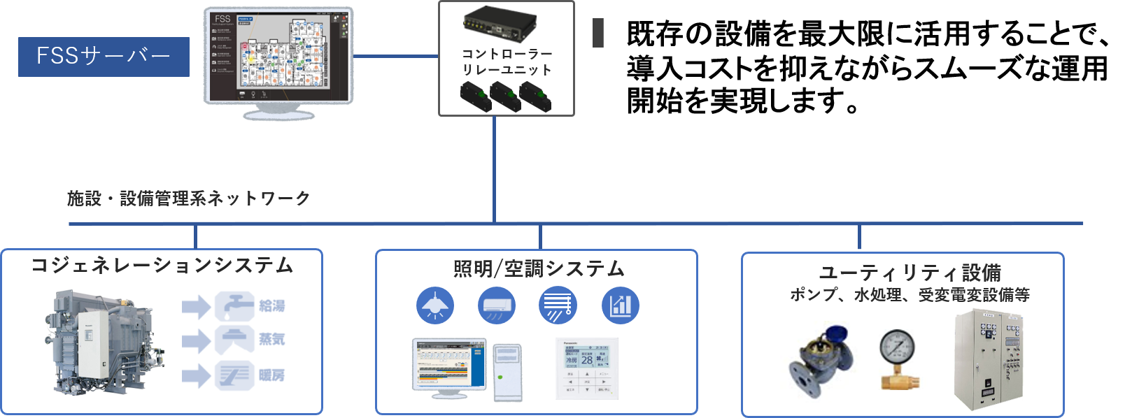 リレーユニットを既存設備と接続することにより、今ある資産を有効活用することが出来ます。