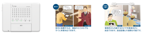 また、トランシーバー(インカム)機能も備えている本商品を導入する事で内線電話とインカムの2台持たなければならない業務環境でも1台で運用できます。